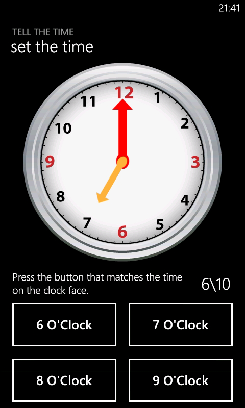Telling the time is a fundemental learning skill required by all and Telling the Time, a Windows Phone app, is the perfect way to learn the basics and progress onto leaning about more advanced subjects such as 24-hour time.